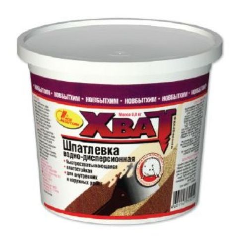 Fertigspachtel wird auf Latex- und Wasserdispersionsbasis in speziellen Behältern verkauft. Spezielle Stoffe, die in der Zusammensetzung dieses Materials enthalten sind, gewährleisten die Haltbarkeit des Produkts.