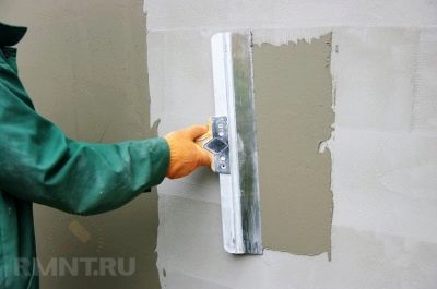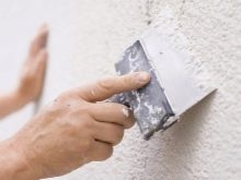 Dann schätze die erforderliche Beschichtungsdicke ab. Wenn die Oberfläche uneben ist, wählen Sie einen Startspachtel. Wenn die Arbeit an der fertigen Putzschicht ausgeführt wird, verwenden Sie die Art der Beschichtung.