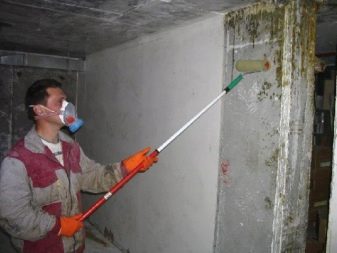 Es ist wichtig, die gesamte Oberfläche mit antiseptischen antimykotischen Lösungen zu behandeln. Nach der Desinfektion lohnt es sich, die Wände und Decken vollständig zu trocknen.