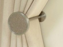 Die Hauptfunktion der Halter für Vorhänge besteht darin, sie in der offenen Position zu halten, ohne die Leinwand vollständig zu drücken. Sie bestimmen die endgültige Form der Vorhänge. Mit diesen Leuchten ist es einfacher, die Raumbeleuchtung einzustellen. Vorhänge müssen nicht jedes Mal komplett geschlossen oder umgekehrt auseinander gezogen werden. Um das Fenster zu verdunkeln, können Sie ein wenig mehr Stoff freilassen, und für den gegenteiligen Effekt ziehen Sie den Stoff fester an.