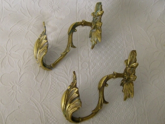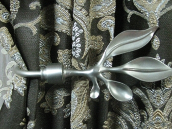 Oft werden diese notwendigen Armaturen zusammen mit den Traufen verkauft und haben ein ähnliches Design mit Spitzen. Wenn sie separat erworben werden, müssen Sie sicherstellen, dass die Halterungen mit Vorhängen, Lampen und anderen Möbeln harmonieren.