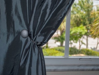 Wenn Sie keine Installationsarbeiten durchführen möchten, ist ein Magnethalter eine ausgezeichnete Wahl für Vorhänge. Es gibt viele Modelle, die in jede Version des Interieurs passen. Es gibt Magnethalter, stilisiertes Holz oder Edelsteine. Es gibt auch Optionen in Form von farbigen Plastikfiguren und Tape-Kompositionen.