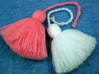 Um einen Pinsel zu machen, benötigen Sie einen dicken Karton in Form eines Rechtecks. Es ist notwendig, eine Länge abzuschneiden, die der erforderlichen Länge der Bürste entspricht. Eine Schnur wird auf eine Pappbasis gewickelt, und nachdem die Rolle sorgfältig entfernt wurde. Das Bündel ist auf einer Seite festgebunden und auf der anderen Seite ist eine glatte Kante angebracht. Um einen flauschigen Pinsel zu erhalten, müssen Sie mehr Material einwickeln. Sie können es mit Perlen dekorieren.
