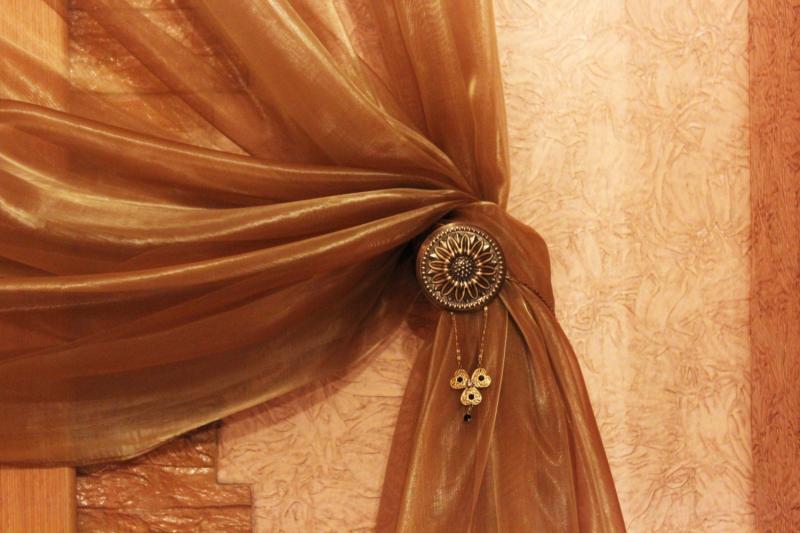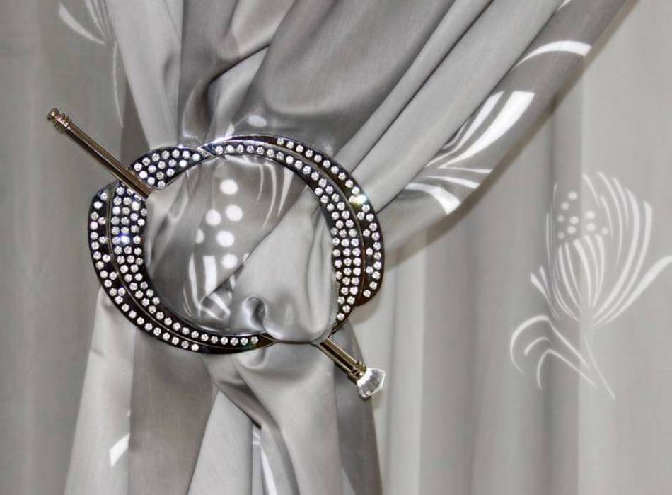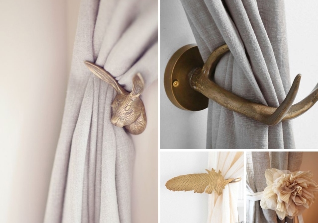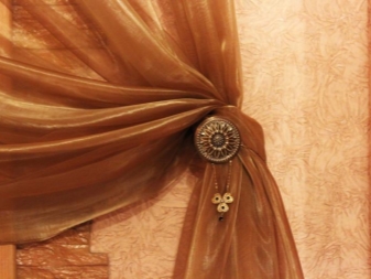 - Dekorative Halter sind ebenfalls erhältlich. Sie werden verwendet, um ungewöhnliche Zusammensetzungen mit verschiedenen Arten von Stoffen zu schaffen. Haarnadeln drapieren Vorhänge gerade geschnitten. Dieses Gerät enthält zwei Teile, die die Leinwand an der richtigen Stelle festklemmen.Also nimm einen schönen Fall.