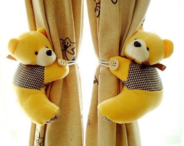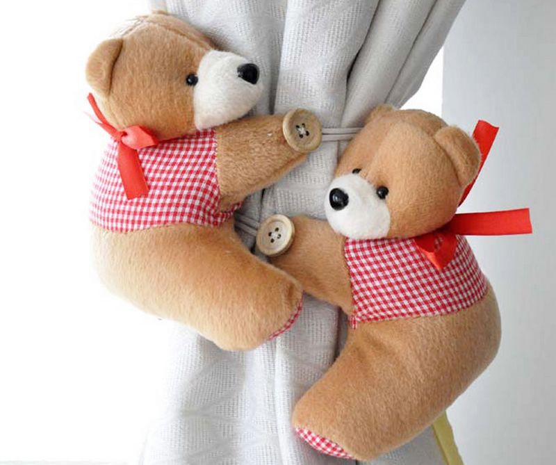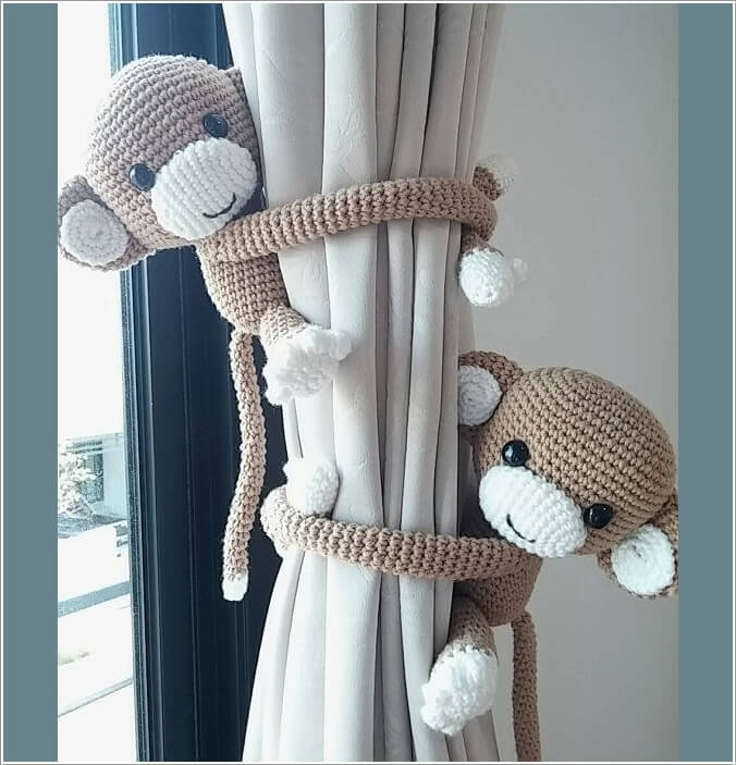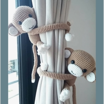 Für diejenigen, die gut häkeln können, wird es leicht sein, einen Vorhanghalter in Form eines Stofftieres zu schaffen. Solche podhvaty passen perfekt in das Kinderzimmer.