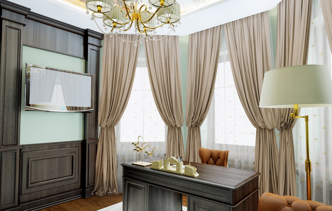 - bündig mit der Fensterbank - Diese Methode wird als klassisch eingestuft. Es wird oft im Wohnzimmer, Schlafzimmer oder Büro verwendet. Es ist besser geeignet für Vorhänge, die weit über die ganze Wand reichen. Somit dringt die maximale Menge an Tageslicht in die Fensteröffnung ein.