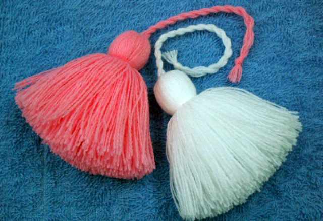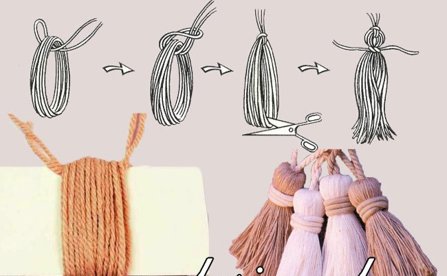 Es ist nicht schwer für jemanden, einen Griff von der Schnur zu machen. Es genügt, die Schnur der gewünschten Farbe und Dicke zu kaufen und daraus ein Geflecht zu flechten. An den Enden können Quasten angebracht werden, die auch mit Perlen oder einer Schnur hergestellt werden können.