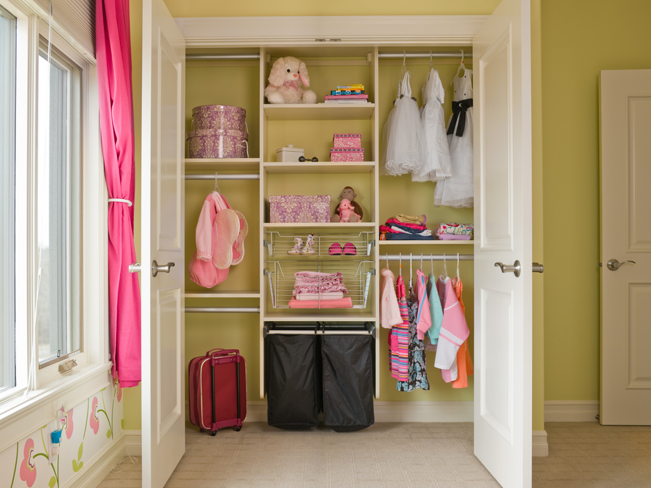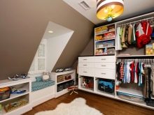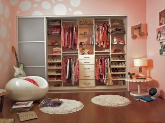 Die Garderobe wird der Traum eines Mädchens sein. Es ist notwendig, einen Scheinwerfer darin zu installieren, damit die junge Person ihre Outfits bequem aussortieren kann.