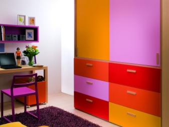 Der Schiebeschrank ist eine bequeme Option für jedes Kind, denn mit seiner Hilfe können Sie einfach Platz sparen. Aufgrund der Tatsache, dass er Schiebetüren hat, kann er ohne Angst vor Unannehmlichkeiten neben dem Bett platziert werden. Im Schrank sollten Regale für die Aufbewahrung von Dingen, eine Schublade für persönliche Gegenstände, eine Querstange für Kleiderbügel und ein Regal für Bücher und Souvenirs sein.