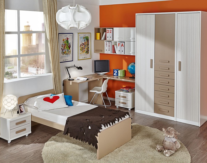 In der Regel weiß eine Person in der Pubertät genau, was sie will. Daher kann ihm die Wahl des Kabinetts anvertraut werden, aber sicher sein, eigene Argumente einzubringen. Wenn der Raum klein ist, sollte der Schrank wenig Platz einnehmen, aber gleichzeitig genügend Dinge mit einbeziehen. In einem großen Raum ist es besser, ein Möbelset zu wählen, das aus einem Bett, einem Arbeitsbereich und einem Kleiderschrank besteht.