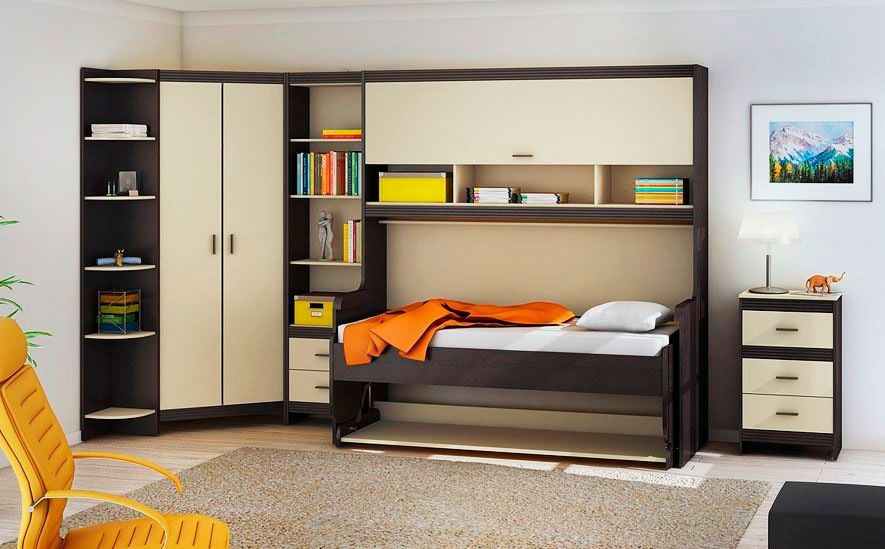 Einige Jugendliche in ihrem schwierigen Alter möchten vielleicht ihr Zimmer zu sehr verändern und wählen ein Kabinett von ungewöhnlicher Form und Design. Eltern müssen dem Kind erklären, dass er in einigen Jahren seiner Wahl müde wird und andere Möbel kaufen muss. Aber wenn die Familie die finanziellen Möglichkeiten hat, dann lohnt es sich Zugeständnisse zu machen und den Schrank zu kaufen, den der Zimmerbesitzer mag.
