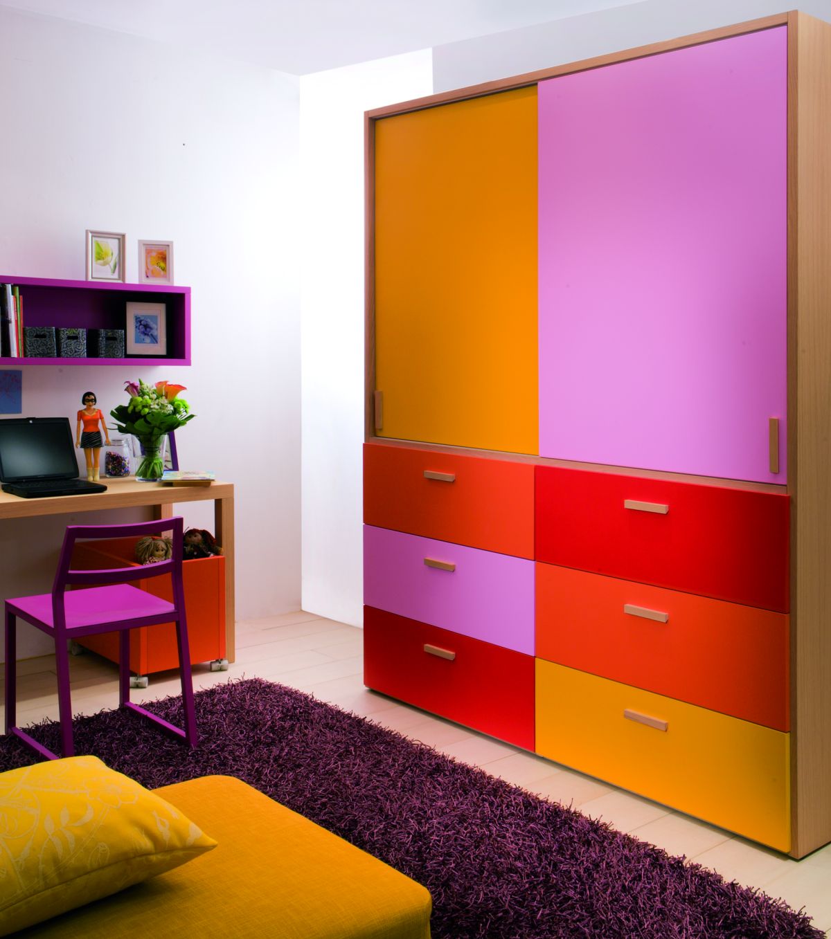 Die Garderobe ist ein wichtiger Teil des Jugendzimmers. Dank ihm weiß der Schüler immer, wo sein Eigentum ist und entwickelt die Fähigkeit, Ordnung in die Regale zu bringen. Alle Möbelstücke im Jugendzimmer sollten funktional sein, damit das Kind den ihm anvertrauten Raum optimal nutzt und sich darin wohl fühlt. Daher sollte der Schrank praktisch und geräumig sein, so dass alle notwendigen Dinge leicht passen.