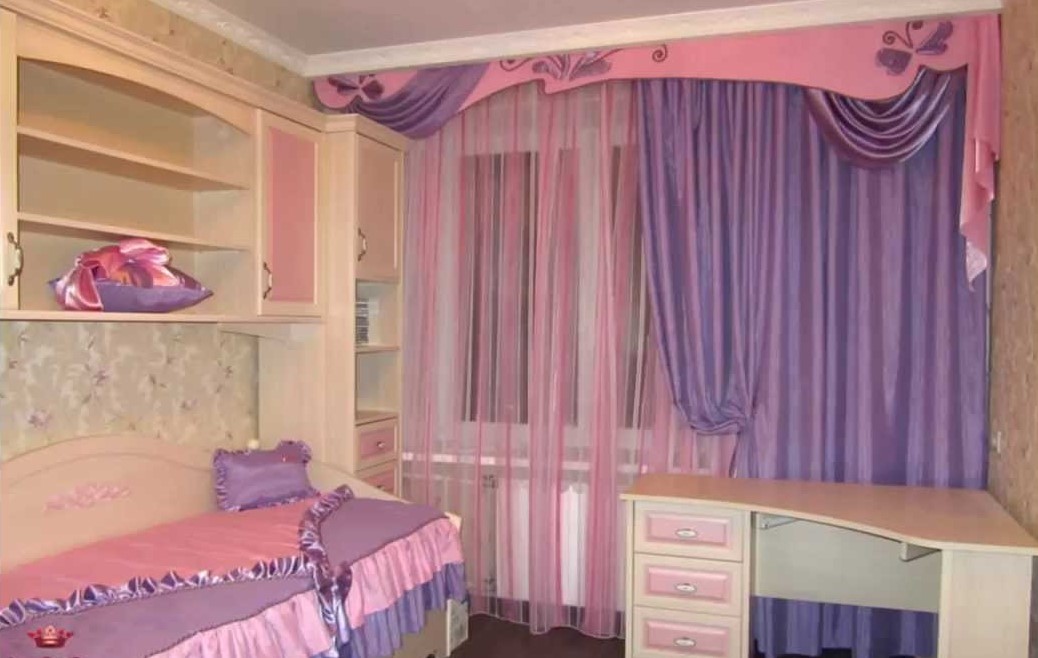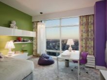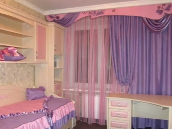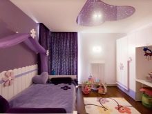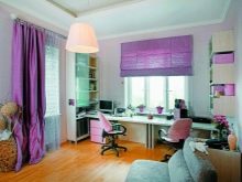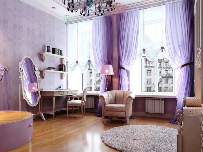 Lila Vorhänge können den Raum eines Kindes oder Teenagers schmücken. Auch für die Gestaltung von Fensteröffnungen in diesem Teil des Hauses können Sie verschiedene Farbtöne verwenden. Psychologen sagendass eine solche Farbe sich positiv auf die Entwicklung kreativer Fähigkeiten bei Kindern auswirkt.