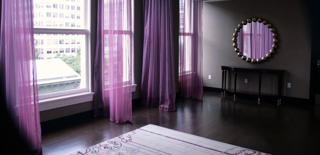 Weitere Design-Ideen mit lila Vorhängen finden Sie unten.
