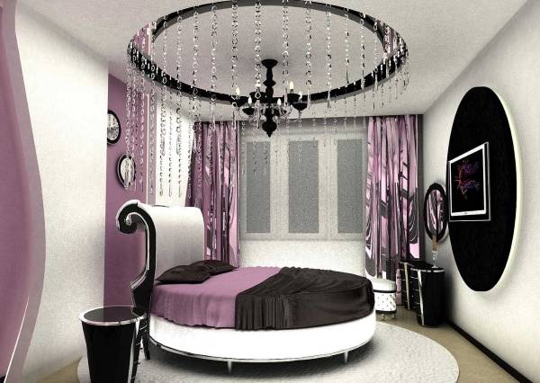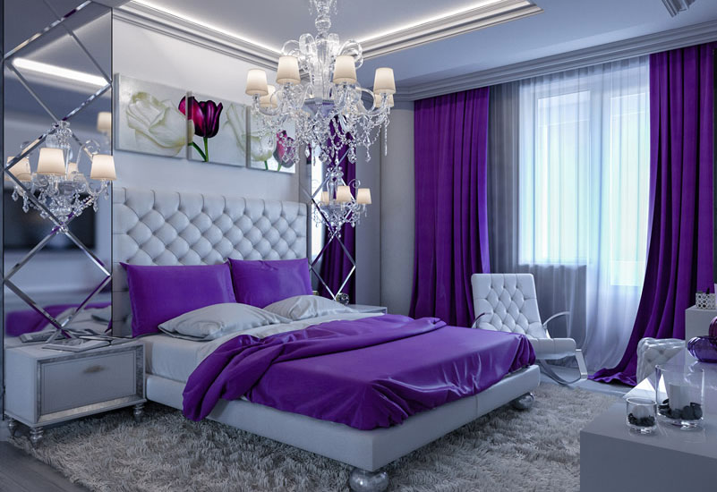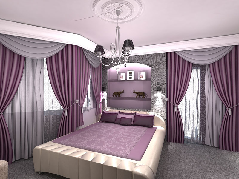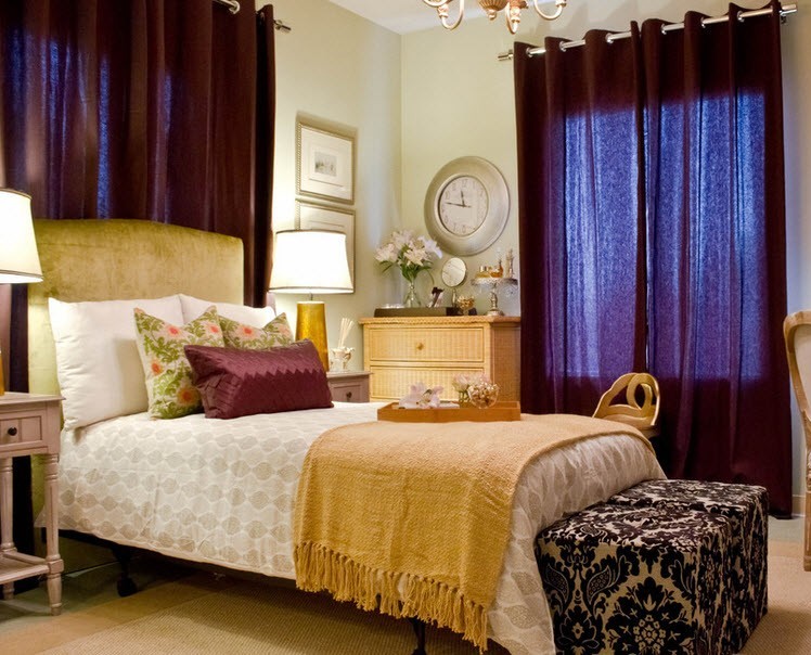 Das Schlafzimmer ist ein besonderer Ort im Haus. Hier, wie in keinem anderen Teil des Hauses, sind Komfort und Gemütlichkeit wichtig. Violette Vorhänge sind ideal für den Schlafbereich, besonders in dunklen Farben. Sie werden eine Atmosphäre der Kultiviertheit und einer gewissen Mystik im Raum schaffen.