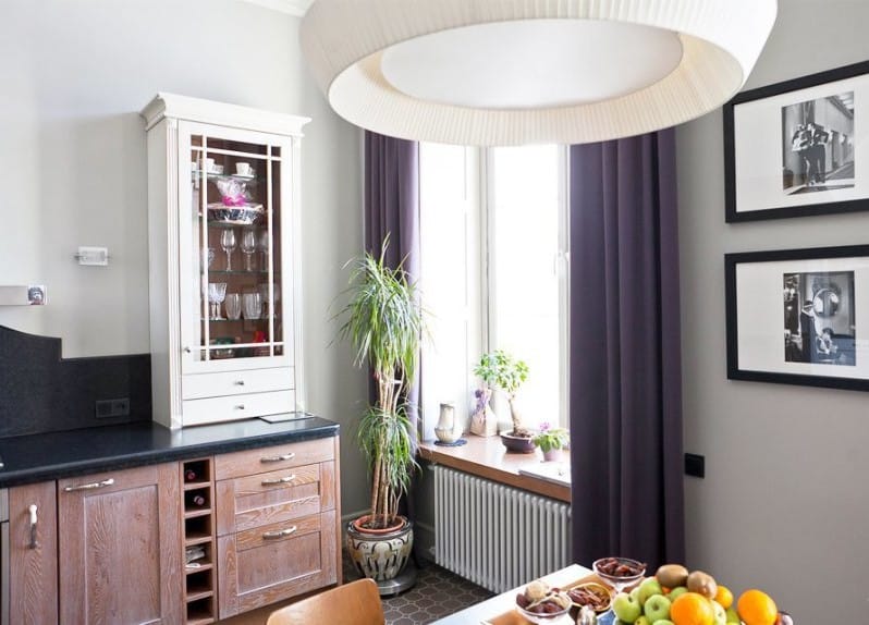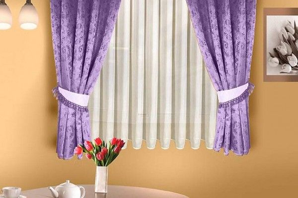 Der Küchenraum ist oft anfällig für verschiedene Verunreinigungen.deshalb Achten Sie bei der Auswahl des Materials für Vorhänge auf eine praktische Option, die einfach und leicht zu pflegen ist. Lila Vorhänge sind perfekt für ein Zimmer in hellen Farben eingerichtet. Sie können auch eine lebhaftere Farbe wählen, wenn der Küchenraum geräumig genug ist und den Komfort nicht beeinträchtigt.