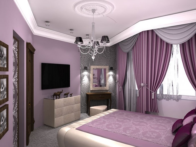 Fliederrosa wird den Raum verändern und eine romantische Atmosphäre wird im Raum herrschen. Helle und helle Töne versetzen den Menschen in Ruhe und Entspannung. In so einem Zimmer wäre eine gute Zeit.
