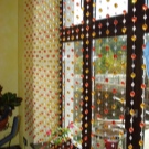 - Ein auffälliges Beispiel für Vorhänge im ethnischen Stil.