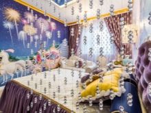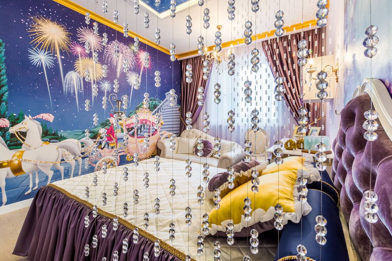 - Mädchenschlafzimmer, mit Kristallvorhängen verziert.