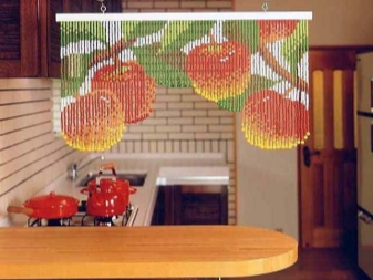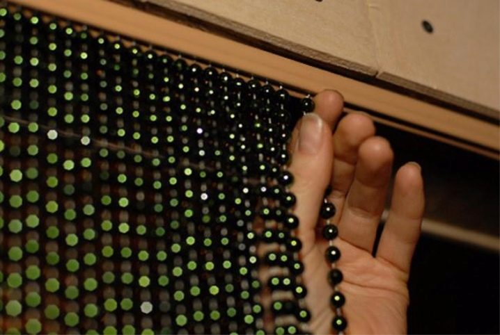 Wenn die Perlen aus einem leichten Material bestehen, können die Fäden auf einem Textilband befestigt werden. Es wird sicher sein, solchen Vorhang auf irgendwelchen Dachvorsprüngen aufzuhängen. Vorhänge aus schweren Materialien werden auf Holz- oder Kunststofflatten befestigt.