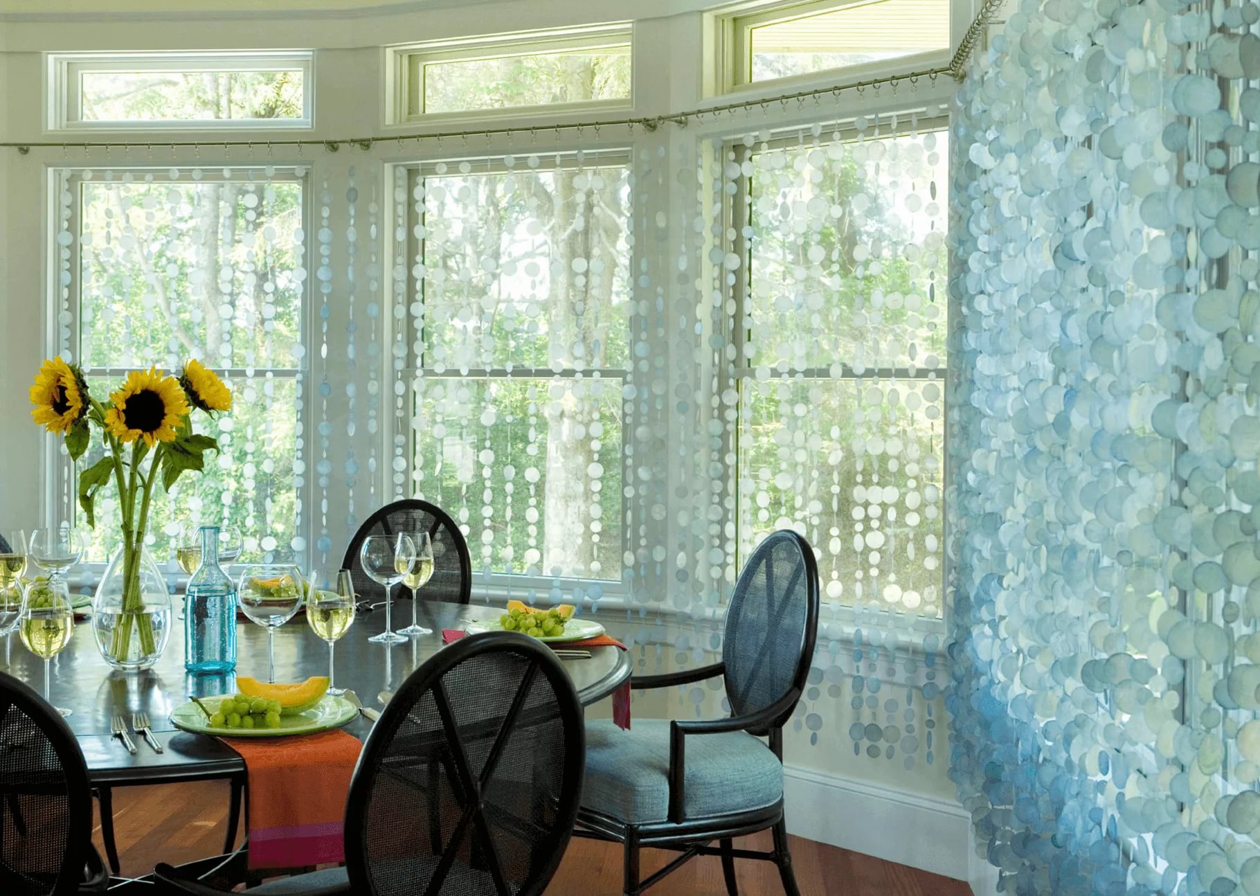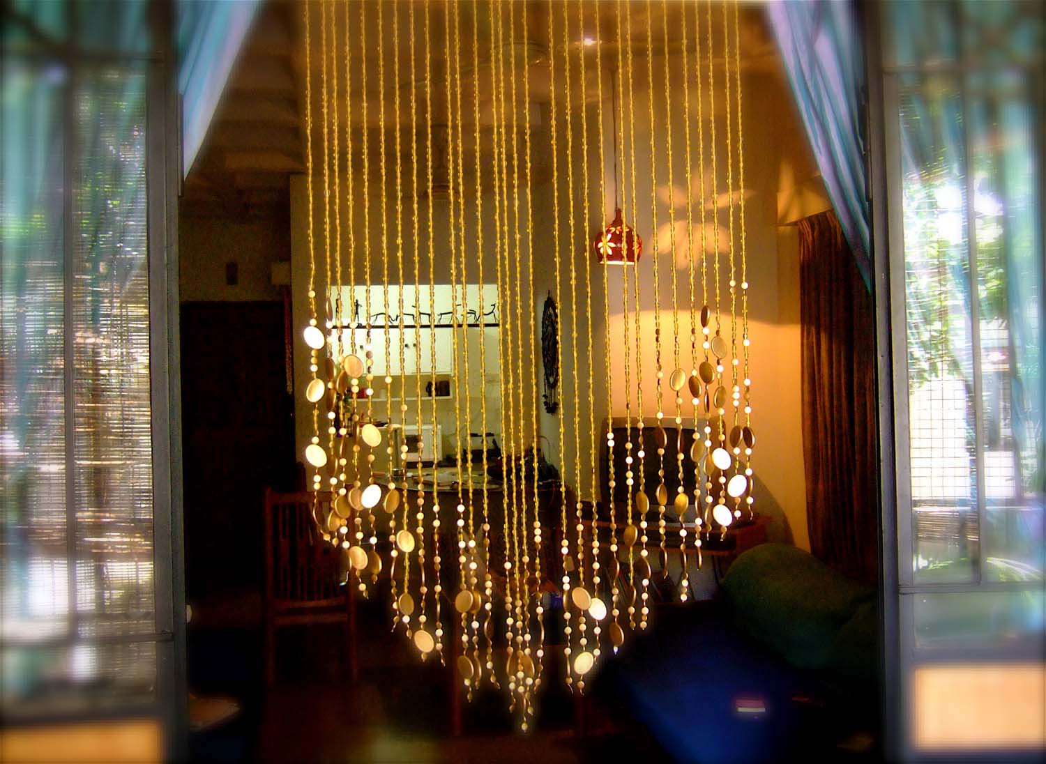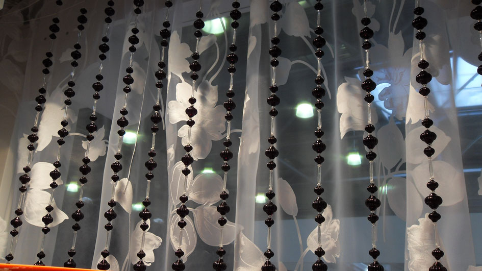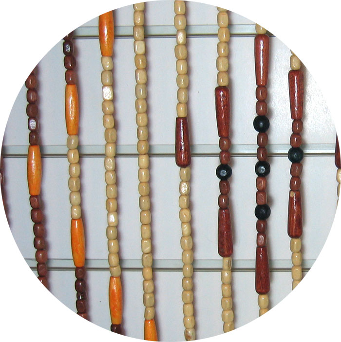 Es gibt Vorhänge mit Elementen aus Glasperlen, Naturstein, Muscheln, Ton, Faden, Papier und Kork. Jedes Material erzeugt seine eigene besondere Stimmung im Raum.