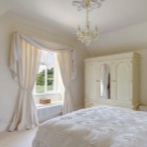 - Die Länge der Vorhänge. Klassische Vorhänge für das Schlafzimmer können so lang sein wie der für die meisten Menschen am häufigsten verwendete Boden und nehmen nur zwei Drittel des Raumes ein. Dieser Typ wird "London-Vorhänge" genannt.