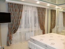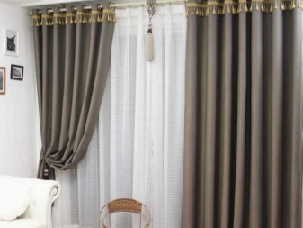 Vergessen Sie nicht, dass die Vorhänge an den Ösen einfach durch Einfädeln der Dachrinnen in spezielle Ringe verbunden werden, die in gleichen Abständen voneinander sind.Vorhänge an der Traufe müssen mit speziellen Schlaufen oder Clips befestigt werden, die unabhängig voneinander auf die gewünschte Höhe eingestellt werden müssen. Es lohnt sich, sich auf die persönlichen Vorlieben und den Stil des Schlafzimmers zu konzentrieren.