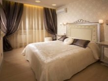 - Solche klassischen Vorhänge im Schlafzimmer Damit können Sie den Raum nicht nur vor neugierigen Blicken schützen, sondern auch vor der hellen Sonne, Fremdgeräuschen (bei Verwendung von Vorhängen aus sehr dickem Stoff). Sie helfen perfekt, eine gemütliche, entspannte Atmosphäre im Schlafzimmer zu schaffen.