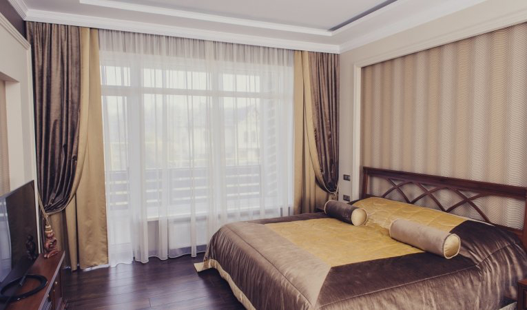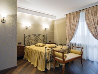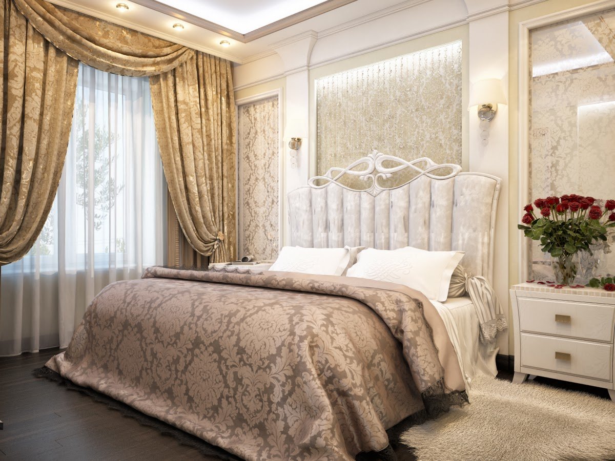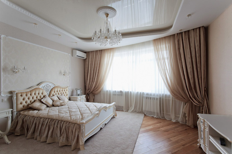Gardinen aus natürlichen Materialien sind besser - sie passen am besten in das Schlafzimmer im Stil von "Klassik".