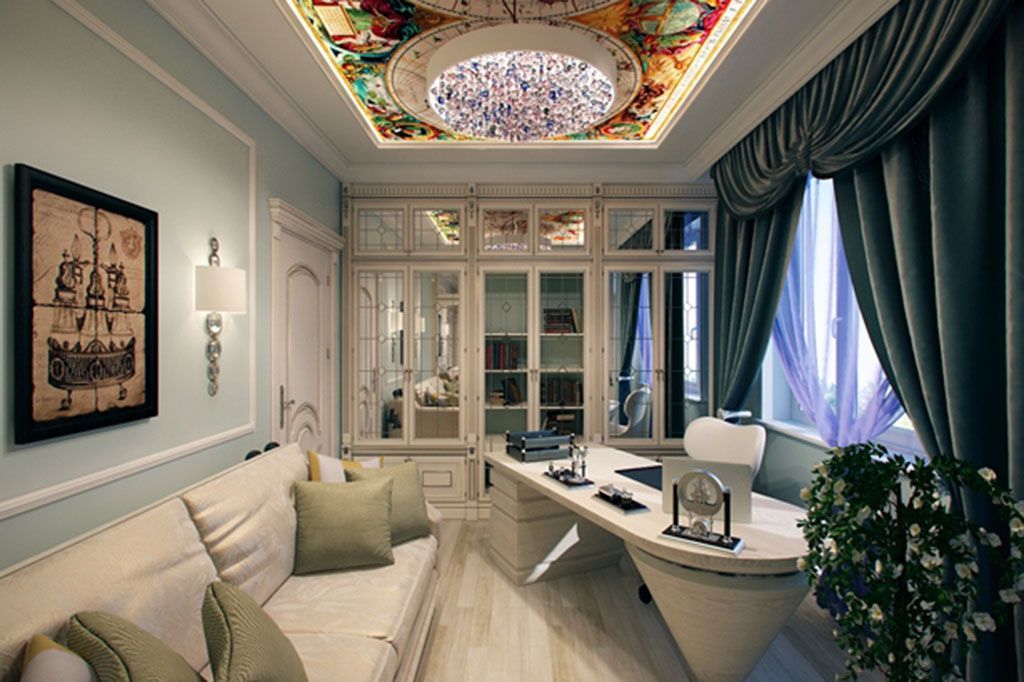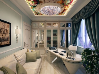 Viel hängt auch von der Größe des Raumes ab. Für ein relativ kleines Wohnzimmer, dessen Deckenhöhe 2,5 Meter nicht überschreitet, ist es vorzuziehen, die einfachste gerade Gruppe zu wählen. Jedes Dekor wird den Raum nur noch kleiner machen.Wenn Sie noch einen kleinen Urlaub in einer vertrauten Umgebung machen möchten, kaufen Sie eine Lambrequin-Locharbeit. Ausgeschnittene "Schnürsenkel" schaffen die Illusion von Leichtigkeit, die dazu beiträgt, die Decken optisch zu "heben" und den Raum zu erweitern.