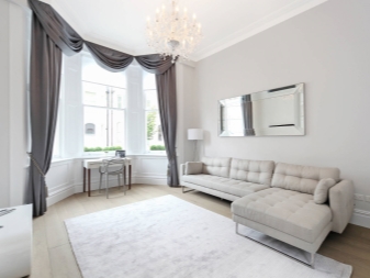 Lambrequins für die Halle unterscheiden sich von Modellen für andere Räume. Das Wohnzimmer ist der Hauptraum des Hauses, denn hier organisieren sie feierliche Dinnerparties, sammeln die ganze Familie am großen Tisch, empfangen Gäste, verbringen ihre Freizeit. Oft ist die Halle mit einer Bibliothek oder einem Schlafzimmer kombiniert. All dies eröffnet gleichzeitig einen großen Spielraum bei der Wahl einer geeigneten Fenstergestaltung und setzt eigene Grenzen: