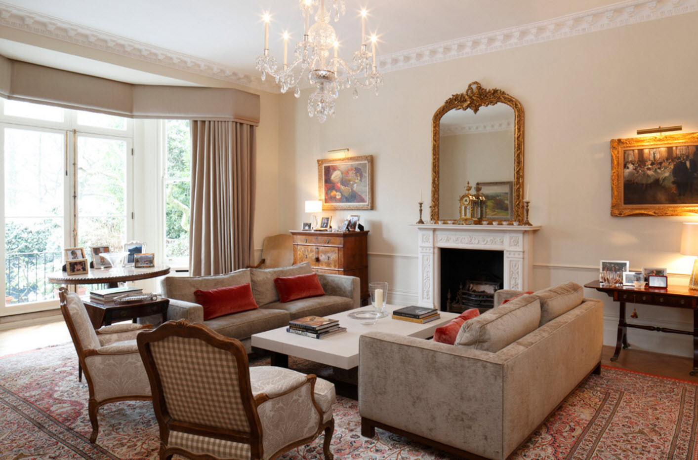 Wenn im Wohnzimmer sowjetische Holzrahmen installiert werden, sollten die Lambrequins das Eindringen von Zugluft in den Raum verhindern.