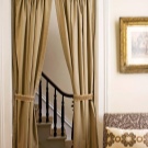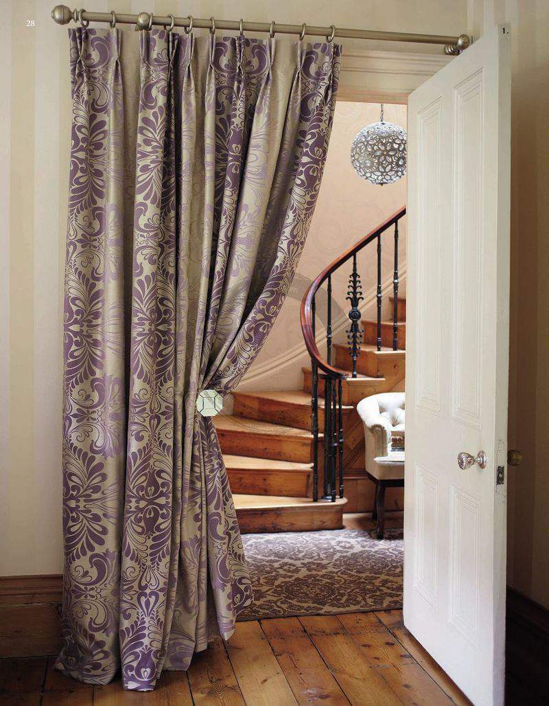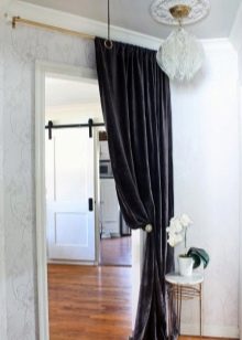 Wenn Sie Vorhänge an der Tür hängen, ist der Vorgang ähnlich wie das Installieren von Vorhängen in der Fensteröffnung. Sie müssen Vorhänge installieren, die Vorhänge selbst hängen werden. Der Vorhang an der Eingangstür hängt von der Innenseite des Raumes, um die Verschmutzung der Leinwand zu minimieren.