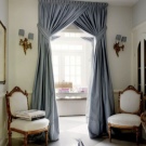 Sie können Vorhänge auch an der Glastür oder auf der Leinwand mit Glaseinsätzen anbringen. Vorhänge werden dem Raum Privatsphäre geben und persönlichen Raum kennzeichnen. In anderen Fällen haben die Vorhänge eine dekorative Funktion. Sie sind verantwortlich für den Komfort, die Individualität und den Charme des Zimmers.