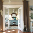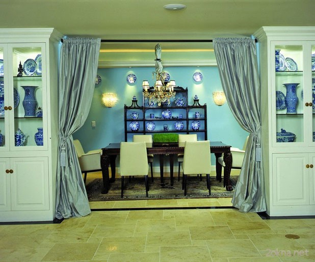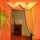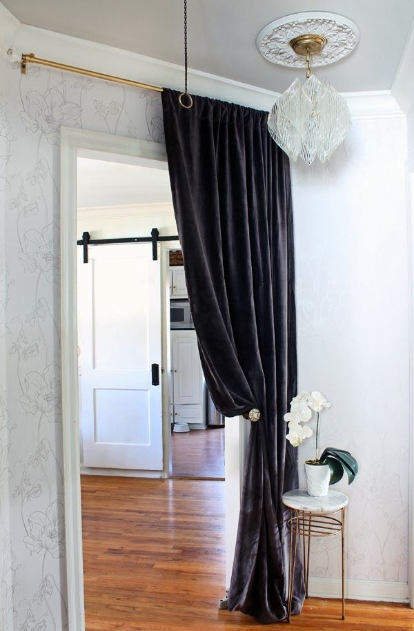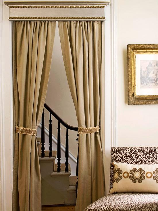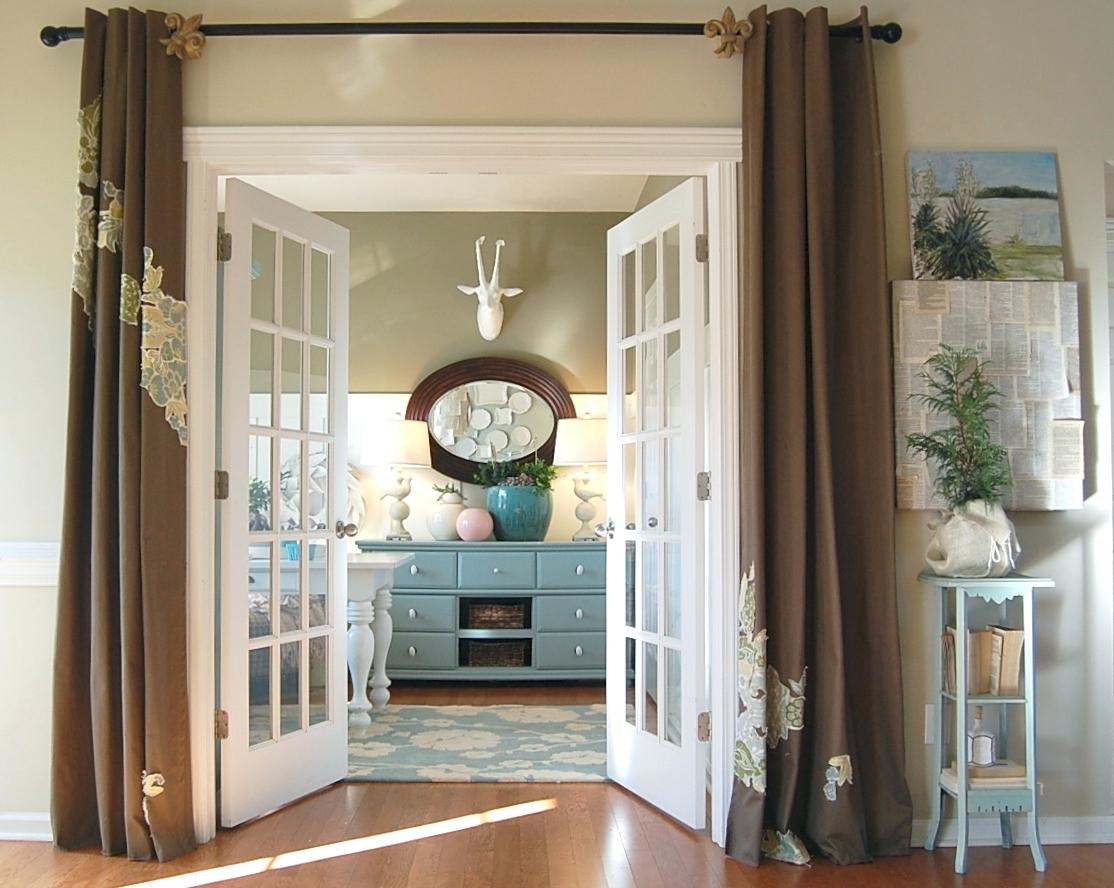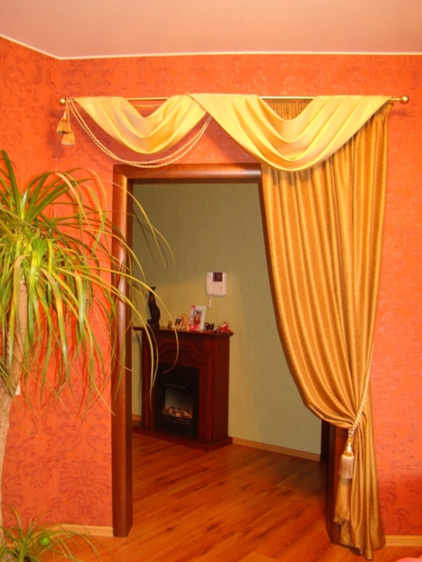 Diese Ideen helfen Ihnen, den Raum originell und stilvoll zu machen. Kompetent ausgewählte Vorhänge an den Türen schmücken den Raum, entlasten den Raum und sorgen für eine gemütliche Atmosphäre.