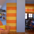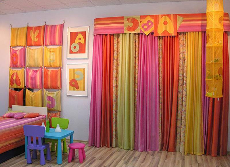 - Kinderzimmer gehört zu der Kategorie von Räumen, in denen das Vorhandensein von Innenvorhängen erforderlich ist. Eltern sollten immer hören, was ihr Kind tut, um Vertrauen in ihre Sicherheit zu haben.Wählen Sie Produkte basierend auf den Geschmackspräferenzen des Babys. Zum Beispiel mögen Jungen Rollen und japanische Designs, während Mädchen Gardinen mit Perlen mögen. Auch eine geeignete Option mit Fotodruck, die die beliebtesten Zeichentrickfiguren darstellt.