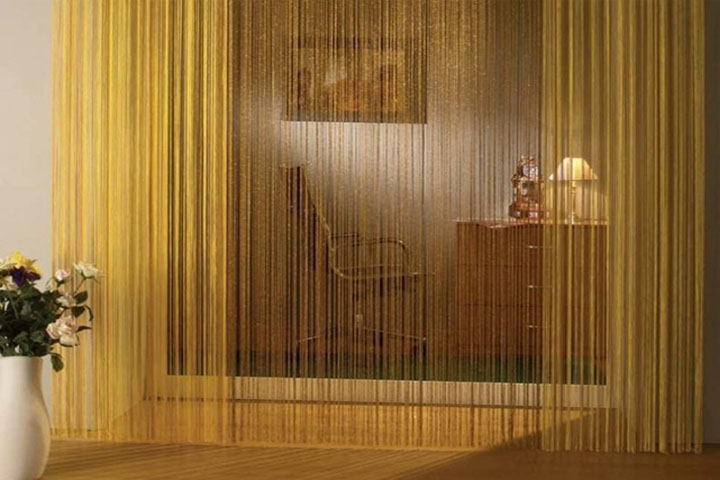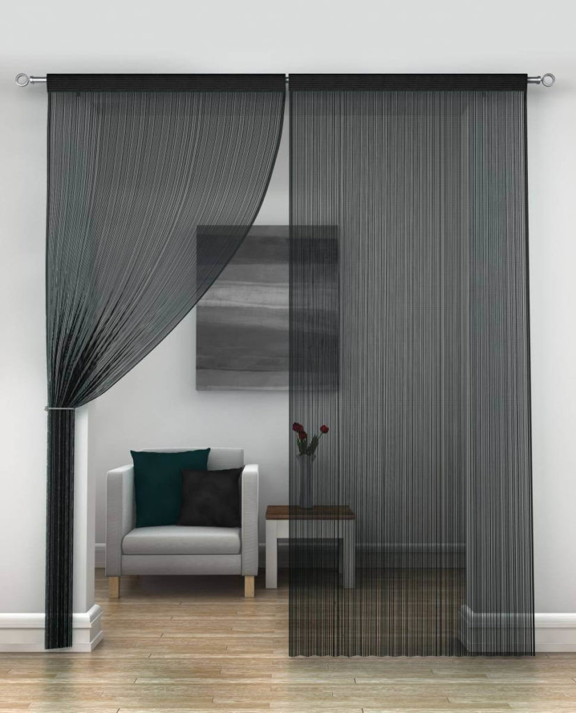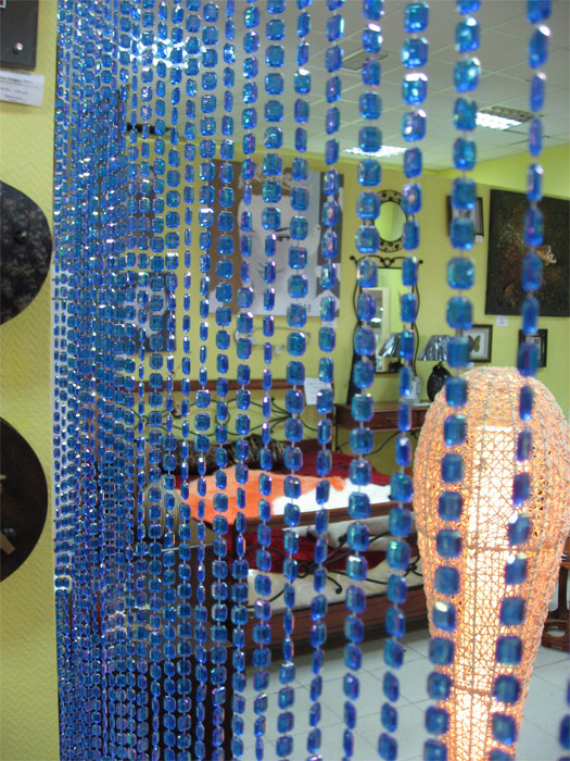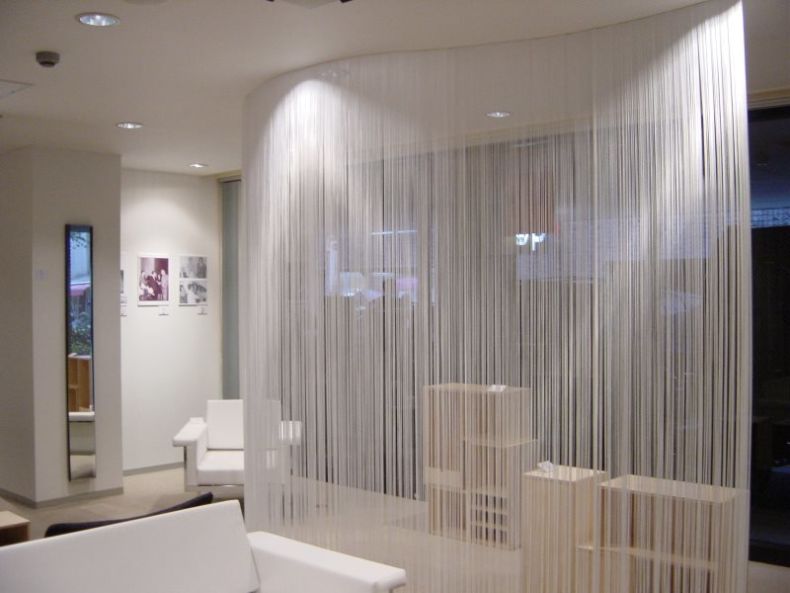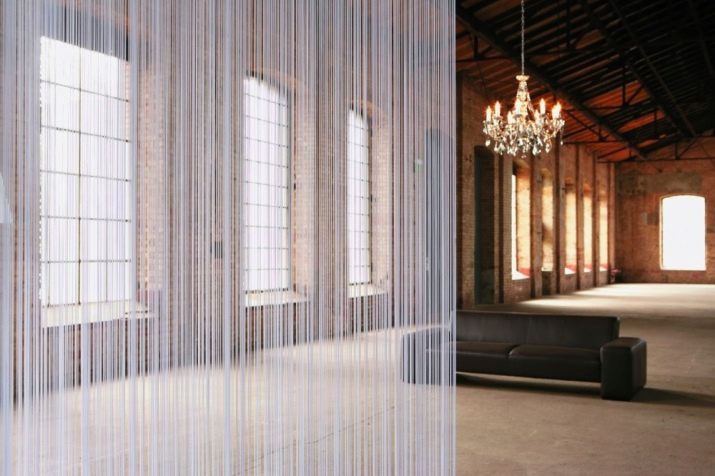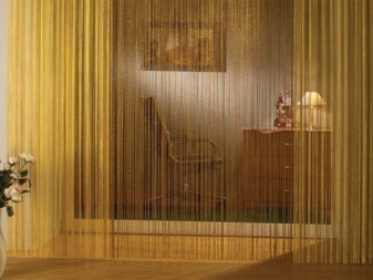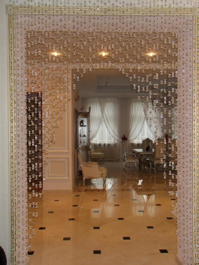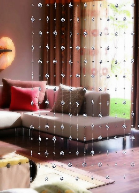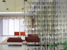 Je nach Art des Zimmers wählen Sie leichte Chiffonvorhänge, Musselin oder Perlenvorhänge. Wenn Sie feste Perlen gleicher Größe wählen, gibt diese Lösung die Raumstärke an.. Für eine fröhlichere Situation lohnt es sich, die farbigen Perlen in verschiedenen Größen zu betrachten.