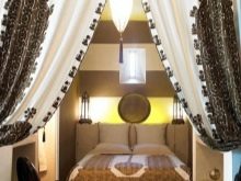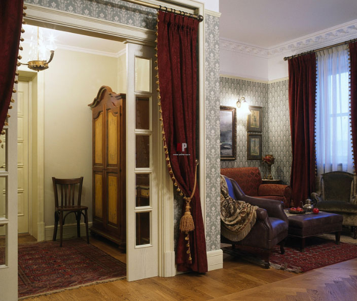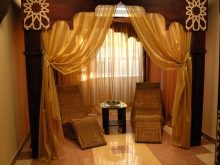 - Innenvorhänge helfen, einen Teil des Raumes zu trennen und verstecken Sie vor den Augen anderer Haushalte;