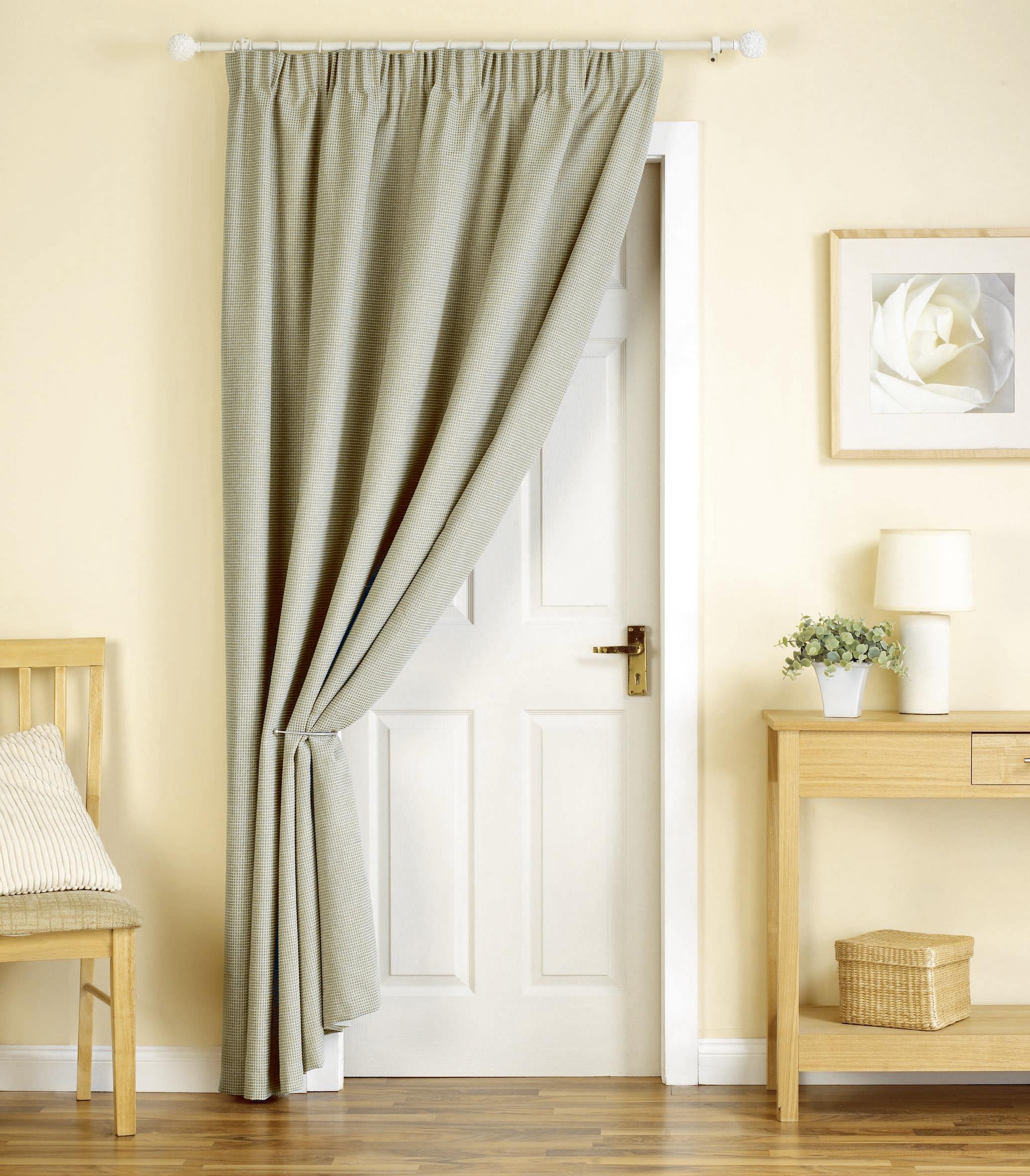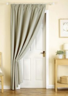 Vorhänge können genau an der Tür oder an der Tür hängen. Zum Beispiel, wenn es in Ihrem Haus Innentüren gibt, ist es am besten Vorhänge aufzuhängen. Wählen Sie Modelle von Produkten, die nicht am Vorhang, am Türblatt selbst montiert werden. Zu der Anzahl solcher Vorhänge können Rollos oder Plissees zugeordnet werden. Sie stören nicht die Arbeit der Tür selbst.