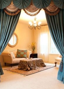 Je nach Stil des Raumes können Sie Vorhänge wählen, die das Interieur des Raumes betonen und eine harmonische Ergänzung der Idee des Designers darstellen.