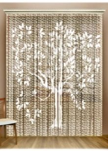 - Holzprodukte gelten als universelle Lösung für die Inneneinrichtung. Holz Vorhänge Sie haben ein ansprechendes Aussehen, sind pflegeleicht und können in jeder Farbe lackiert werden. Ähnliche Designs werden aus Holzperlen, Fäden, Stäben hergestellt. Sie rascheln angenehm, weisen Insekten ab und tragen zur kühlen Atmosphäre im Raum bei;