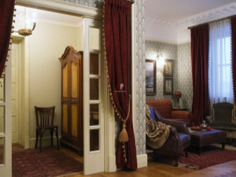 Interroom Vorhänge sind seit der Antike verwendet. Sie schmückten die Häuser von Menschen mit unterschiedlichem Einkommen, schmückten die Paläste und Steinburgen. In der modernen Inneneinrichtung nehmen die Vorhänge an der Tür einen Ehrenplatz ein und geben dem Raum ein vollendetes und gemütliches Aussehen.