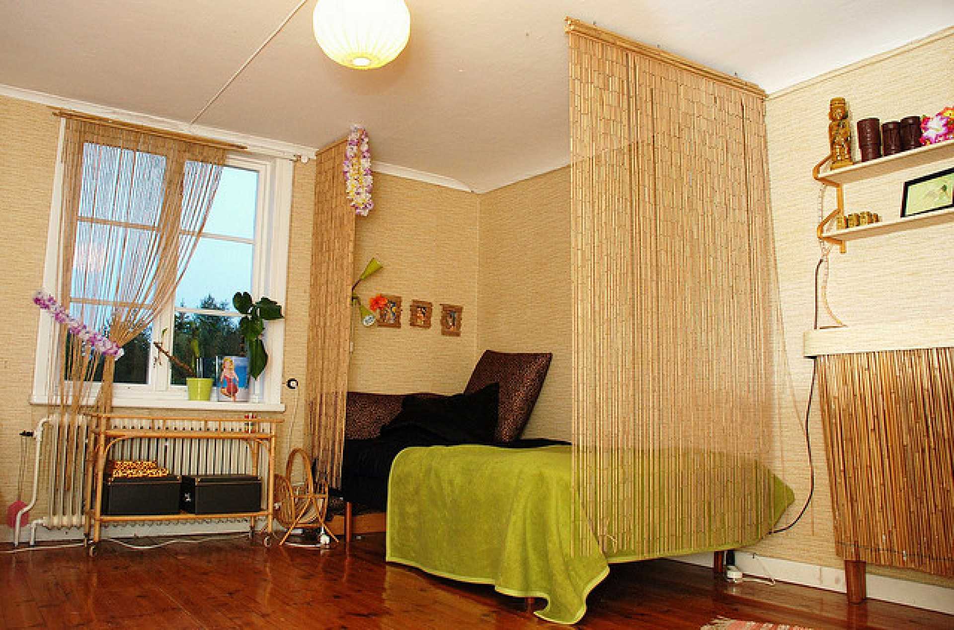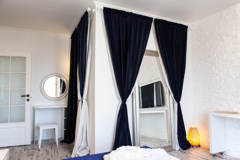 - Wenn Sie ein Studio-Apartment haben, können Sie den Raum mit Vorhängen teilen. So erhalten Sie einen persönlichen Bereich ohne Neuentwicklung;