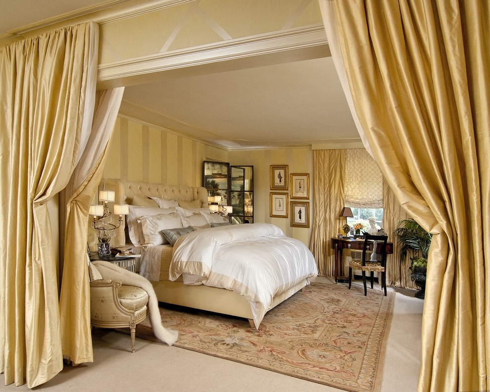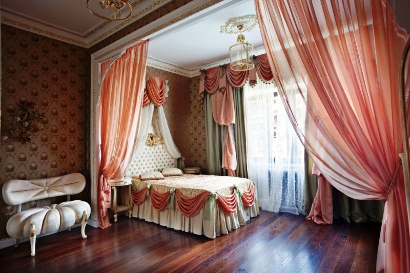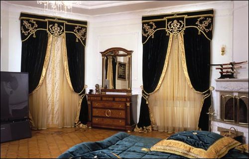 Wenn Ihr Zimmer in einem klassischen Stil eingerichtet ist, achten Sie auf die Vorhänge. Die beste Option wäre das Design von Vorhängen aus schwerem, opakem Stoff, der teuer aussieht. Perfektionieren Sie das Bild der Anwesenheit von Fransen, Quasten und Falten.Wenn Sie massive Vorhänge aus fließenden Textilien bekommen, werden sie dazu beitragen, den Luxus und die Pracht der gotischen Noten Ihres Zimmers hervorzuheben.