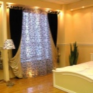 Heute, schaffen Sie eine Vielzahl von Vorhängen, die vorteilhaft sein können, um das Innere des Schlafzimmers zu ergänzen. Moderne Designer empfehlen, klassischen Portieres den Vorzug zu geben.