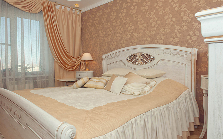 Blei und unverändert ein Klassiker. Dieser Stil ist immer in Mode - auch unter modernen Bedingungen. Für das Schlafzimmer im klassischen Design müssen Sie schlichte Vorhänge ohne Ornamente und auffällige Muster verwenden. Charakteristisch für diesen Stil sind Braun- und Beigetöne.
