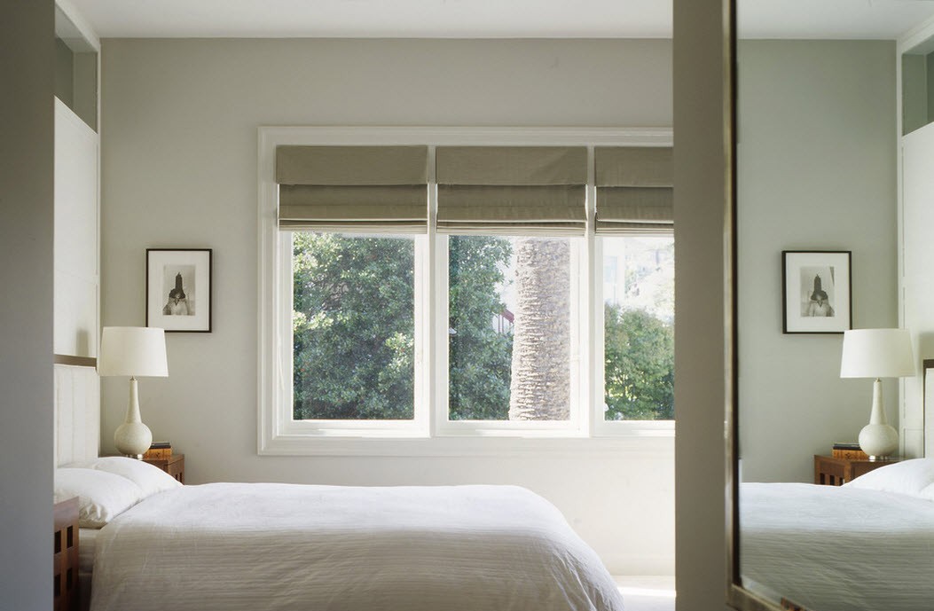 Wie für Minimalismusa, dann ist es in diesem Fall besser, die Exzesse und die Überheblichkeit aufzugeben.Die geräumigen Zimmer sind in beruhigenden Farbtönen gehalten, was ein großer Vorteil ist. Solch eine Atmosphäre beruhigt sich und passt sich zur Ruhe an. Um die Fenster zu dekorieren, ist es am besten, Jalousien zu wählen. Das Hauptmerkmal ist, dass Textilien im Innenraum keinen Akzent setzen dürfen.