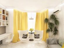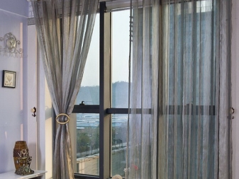 Solche Vorhänge werden oft auf den Balkonen aufgehängt. Wenn wir über die Gestaltung von Fenstern in einem kleinen Raum sprechen und auch das Sonnenlicht im Raum fehlt, wird empfohlen, dieses Material zu verwenden. Wenn Sie in den unteren Stockwerken wohnen und sich mit Hilfe von Vorhängen aus Tüll vor anderen Augen verschließen, wird das praktisch nicht funktionieren.