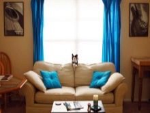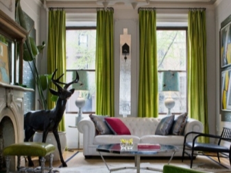 Einfarbige Vorhänge eignen sich sowohl für Standardfenster, die in jedem Haus zu finden sind, als auch für nicht standardmäßige Fensteröffnungen. Lange, gerade monophone Vorhänge schmücken Hoch- oder Panoramafenster. Die Hauptsache ist, die richtige Länge zu wählen.