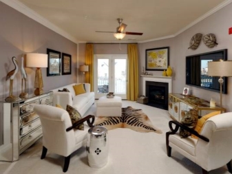 Monochrome Produkte lassen sich viel einfacher mit dem Farbschema kombinieren, in dem das Haus oder die Wohnung dekoriert ist. Experten empfehlen Vorhänge, Kissen, Tischdecken und andere Textilien in einer Farbe in einem Raum zu platzieren, dann wird der Innenraum am harmonischsten sein.